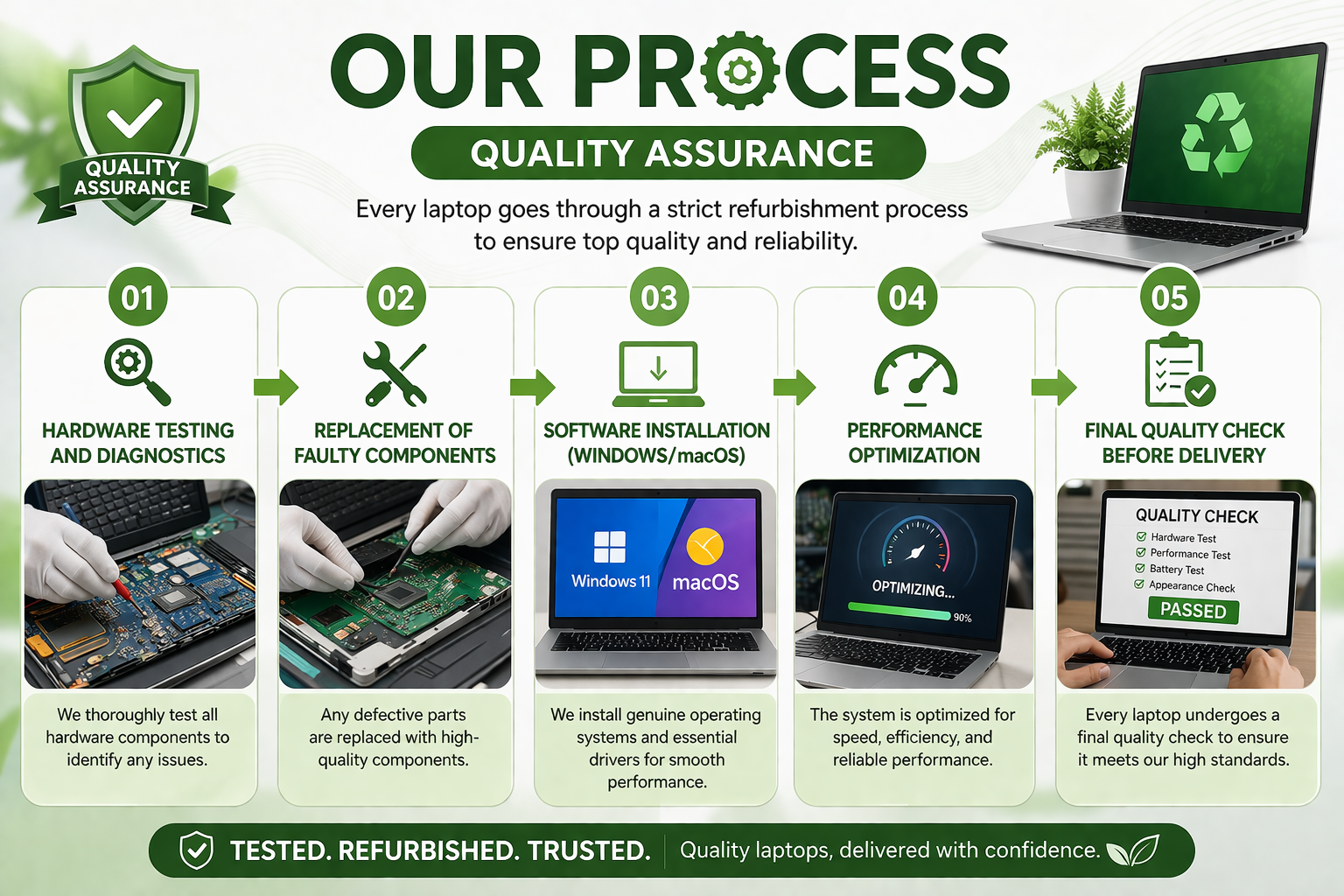Every laptop goes through a strict refurbishment process: